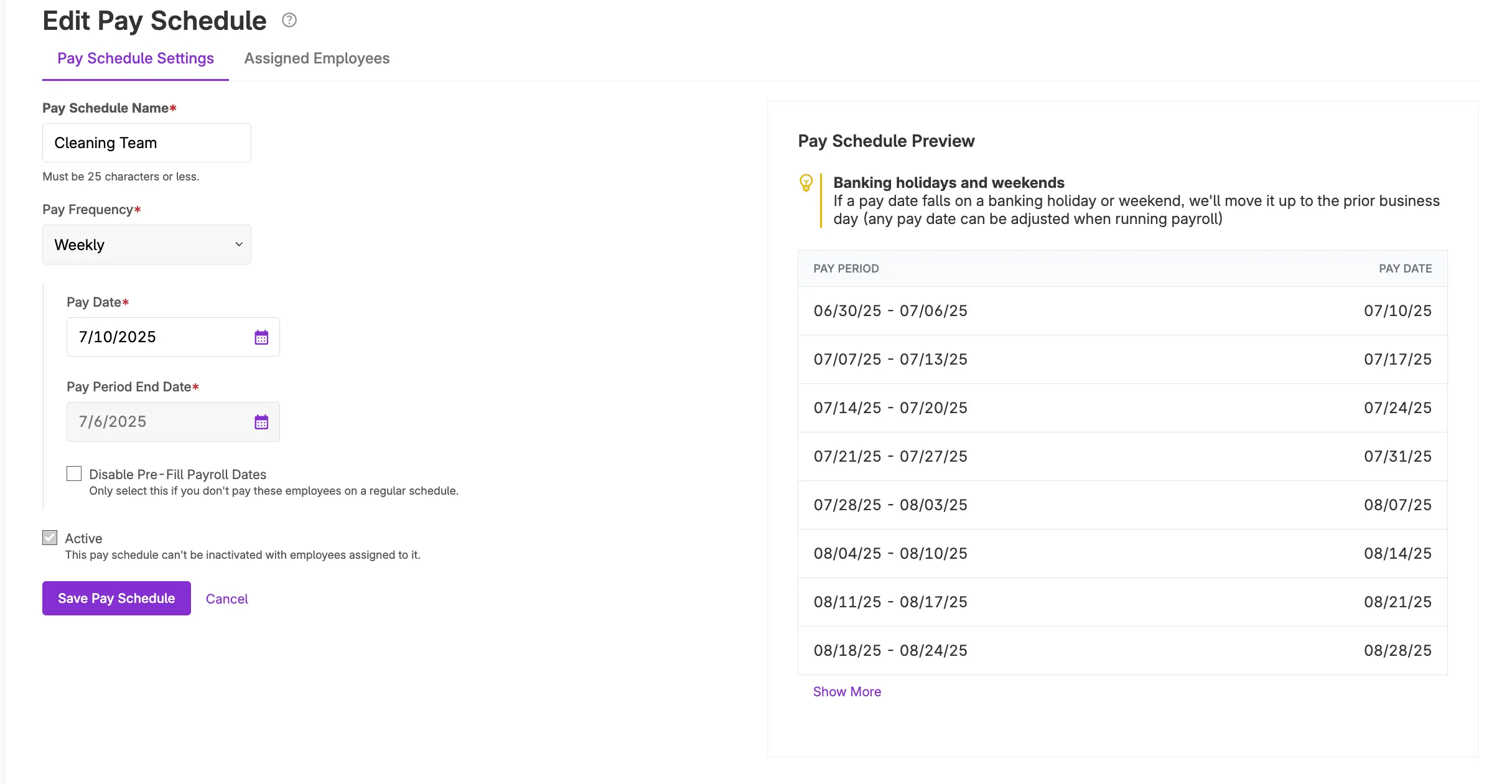 Pay Schedule Enhancement